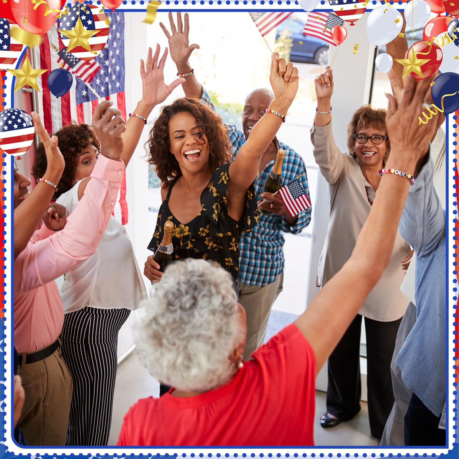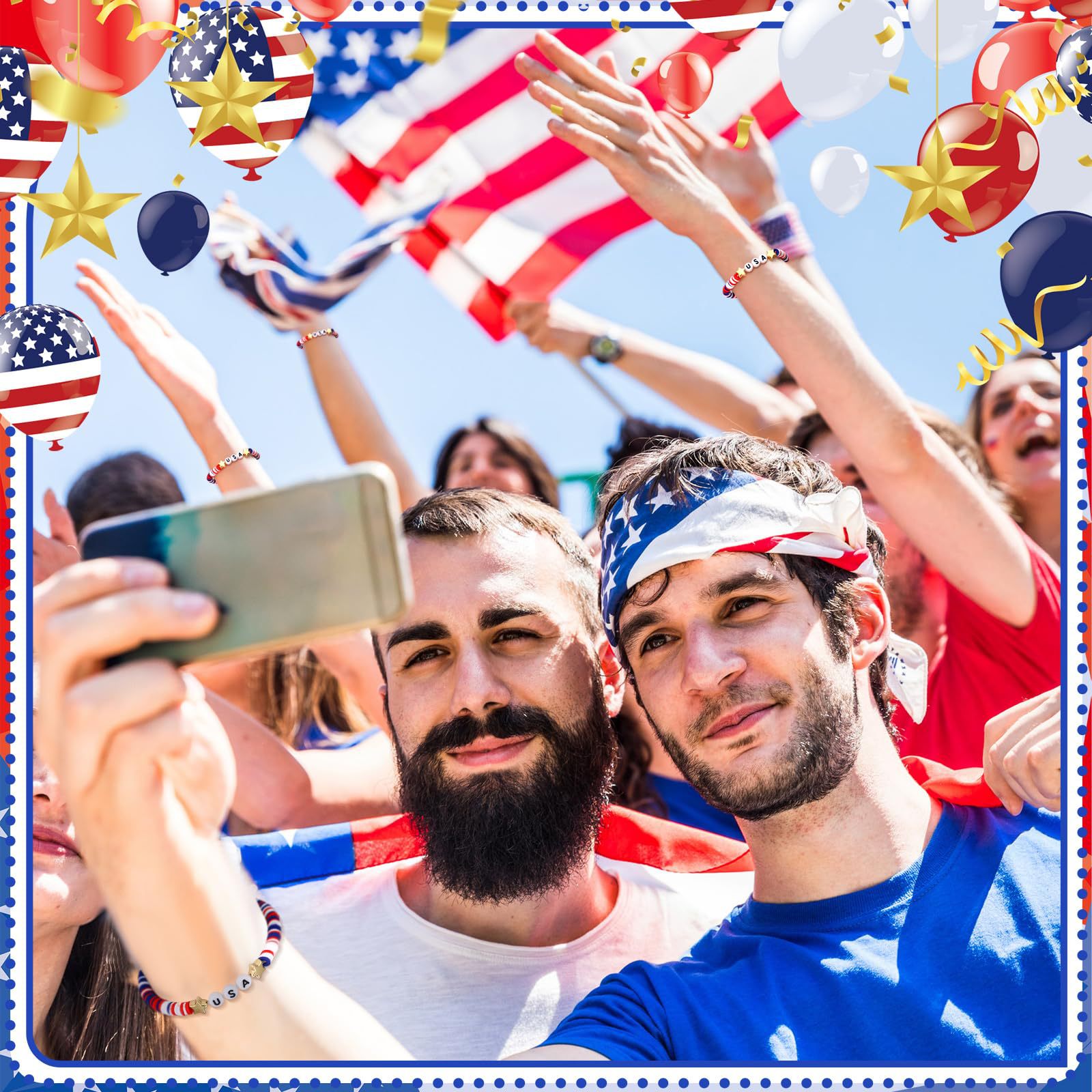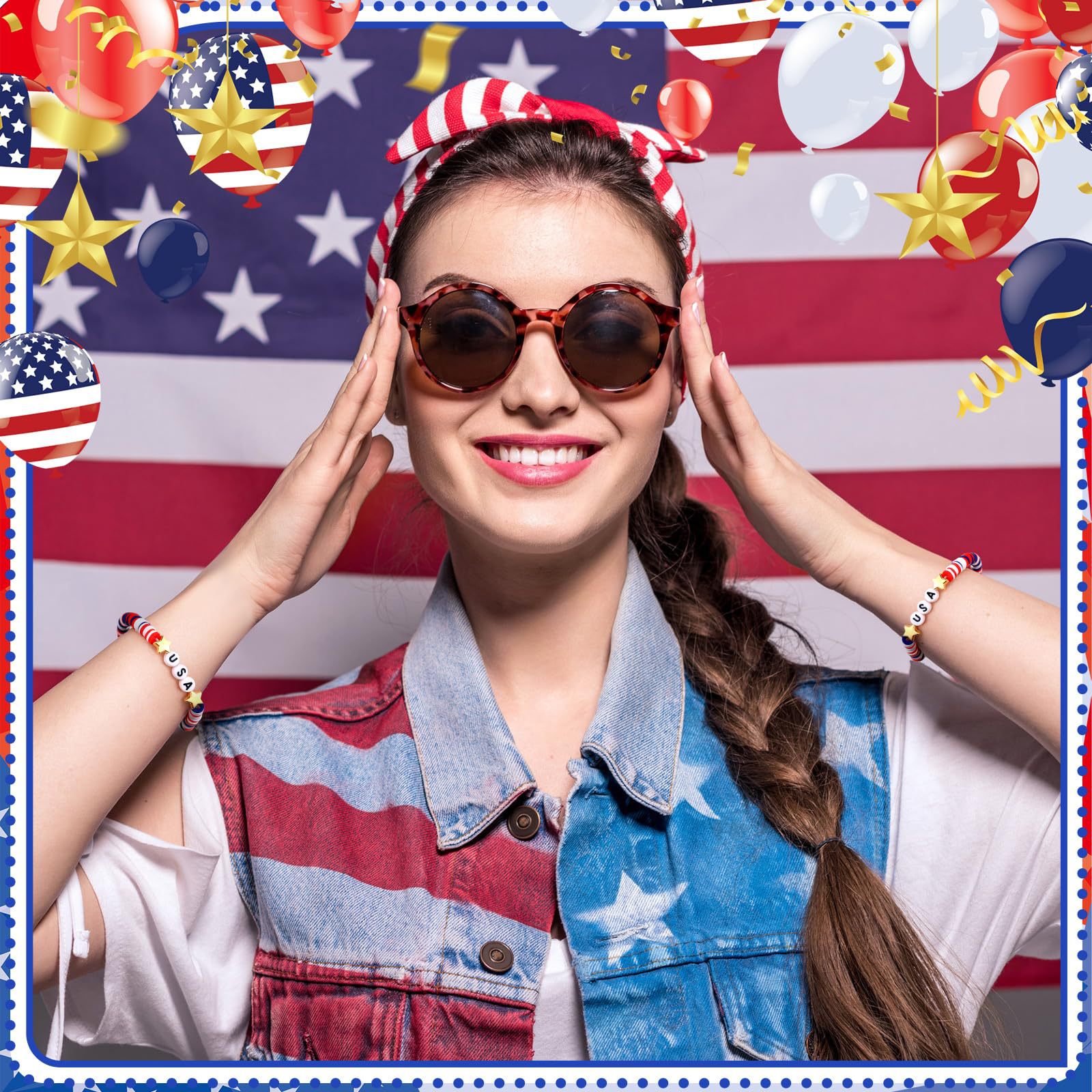 Independence Day Soft Clay Bracelet Set Flag Mixed Color Elastic Beads USA Alphabet Soft Clay Bracelet